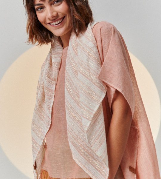Estos pañuelos están realizados en gasa de puro algodón combinando varios colores. Se suma a estas combinaciones detalles de plateado y dorado en algunas variantes que aportan un detalle original.