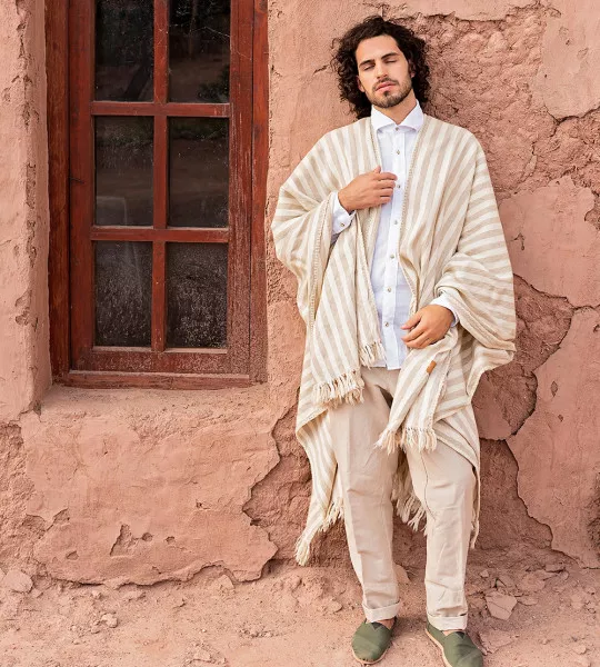 Nuestra Ruana Esperanza está hecha con fibra de Llama descerdada, que garantiza una excelente suavidad al tacto y la conservación de las cualidades únicas de las fibras naturales. Una pieza ideal para acompañarte en las temporadas de Otoño e Invierno.